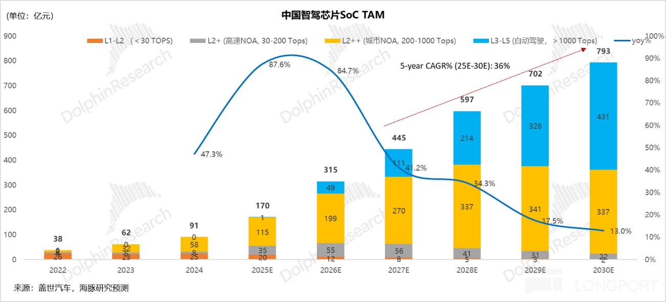 d. 智驾芯片 TAM: 大算力芯片才是核心