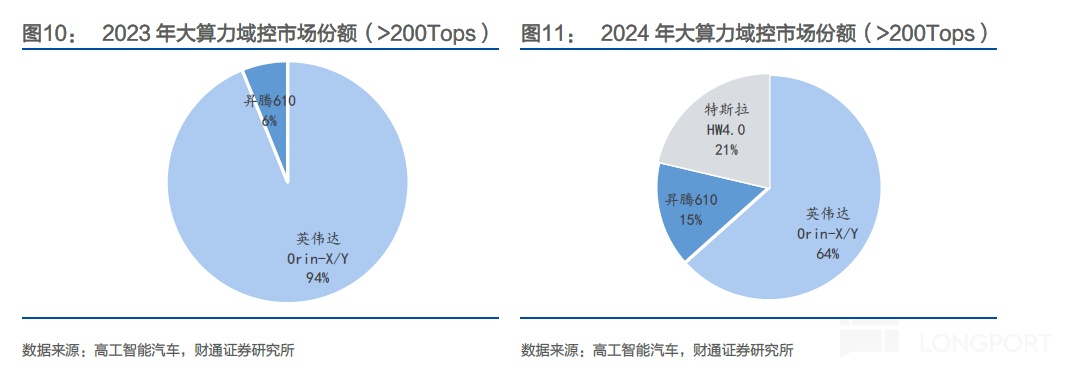 在大芯片市场,其 Orin X/Y 在 2024 年仍维持 64% 的市场份额,在下一代产品(Thor 系列)的研发及量产进度上,也领先国内主要竞争对手至少 1 年。