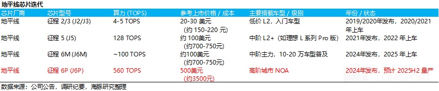 这有助于比亚迪和吉利这种规模大、低毛利的车企,采用地平线 J6P 芯片能能加速城市 NOA 在平价车型上的渗透。