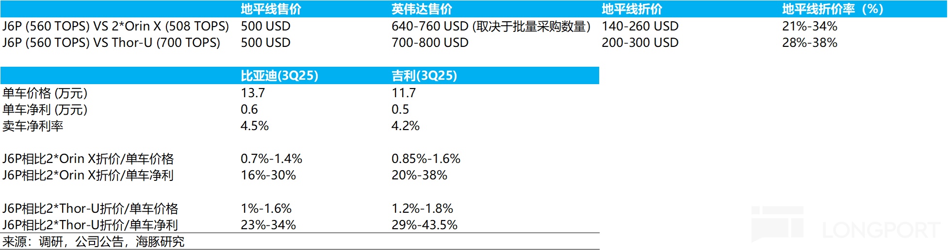b. 定价太高,高阶智驾无法下沉:英伟达的定价基于其通用性能峰值,但在中国低个位数乘用车市场,芯片售价太高,靠英伟达无法实现城区 NOA 在中低端智驾车型的渗透率。