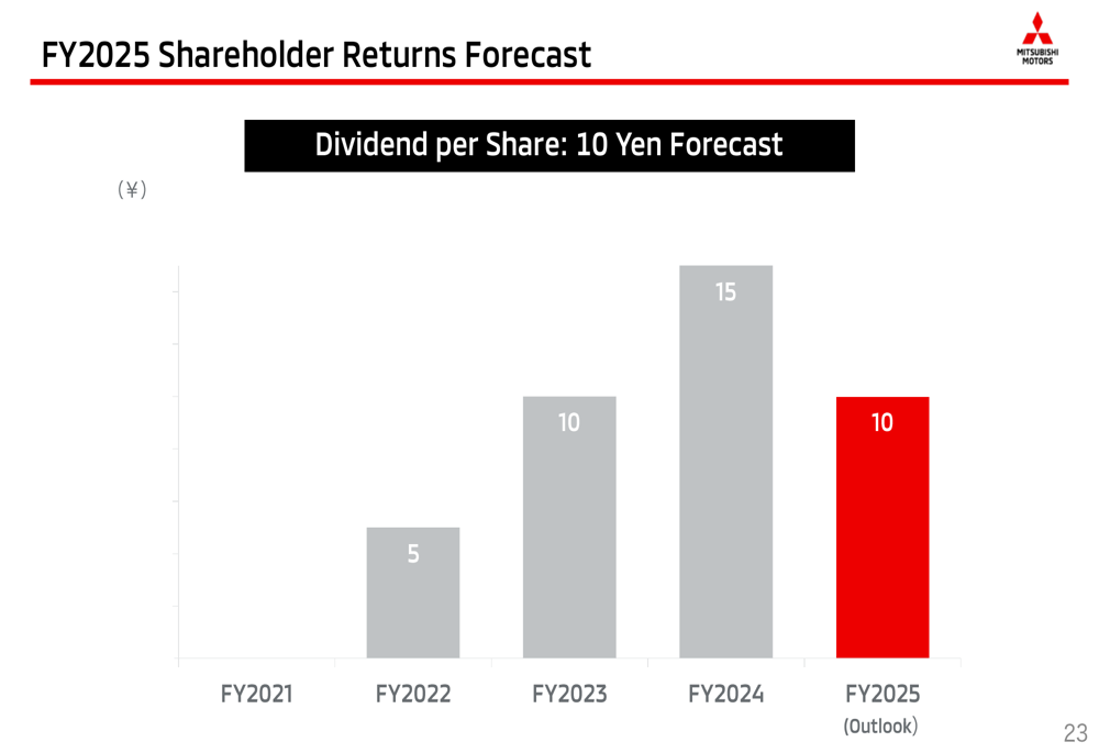 鉴于充满挑战的财务前景,三菱宣布将2025财年的每股股息从¥15减少至¥10: