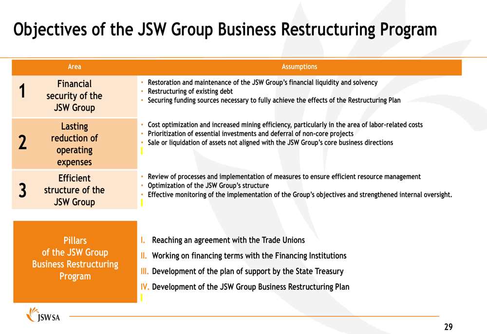为应对具有挑战性的财务状况,JSW推出了一项全面的业务重组计划,专注于三个主要支柱:财务安全、费用削减和高效公司结构。该计划涉及与多个利益相关方的谈判,包括国库、工会和融资机构。