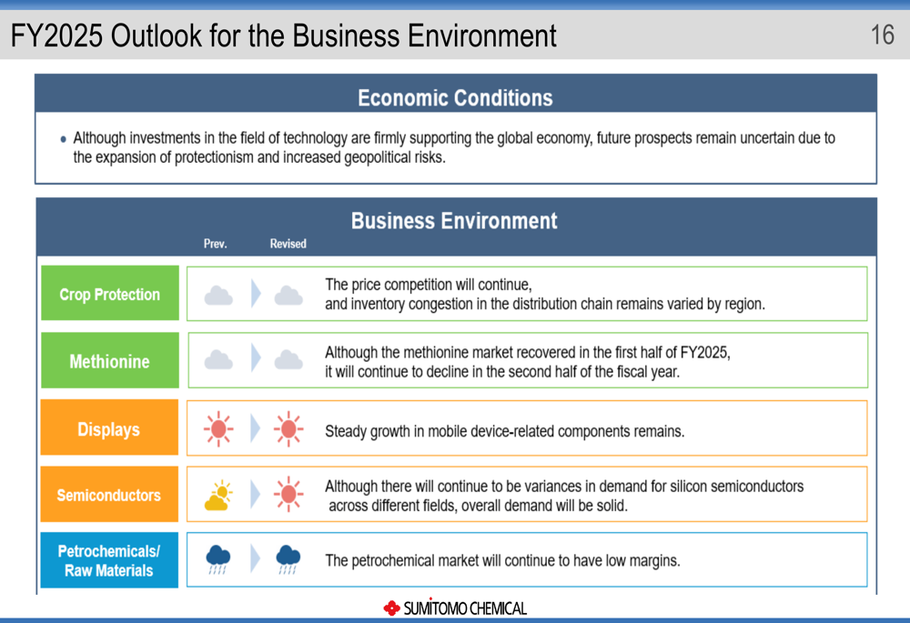这家化工巨头的业绩是在全球经济环境喜忧参半的背景下取得的,技术板块提供了支持,而更广泛的经济不确定性仍然存在。住友多元化业务组合中的行业特定条件各不相同,制药和半导体材料表现强劲,而石油化工继续面临利润率压力。