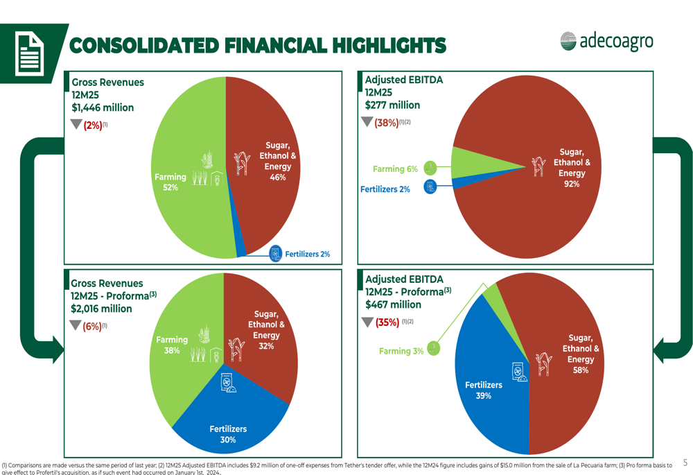 通过收购Profertil实现的收入多元化尤其值得关注。化肥现在占备考收入组合的30%,使其成为单一最大的产品类别。这与乙醇(17%)、乳制品(15%)、糖(13%)和水稻(11%)相辅相成,其余投资组合分布在玉米、大豆、花生、能源和其他产品中。